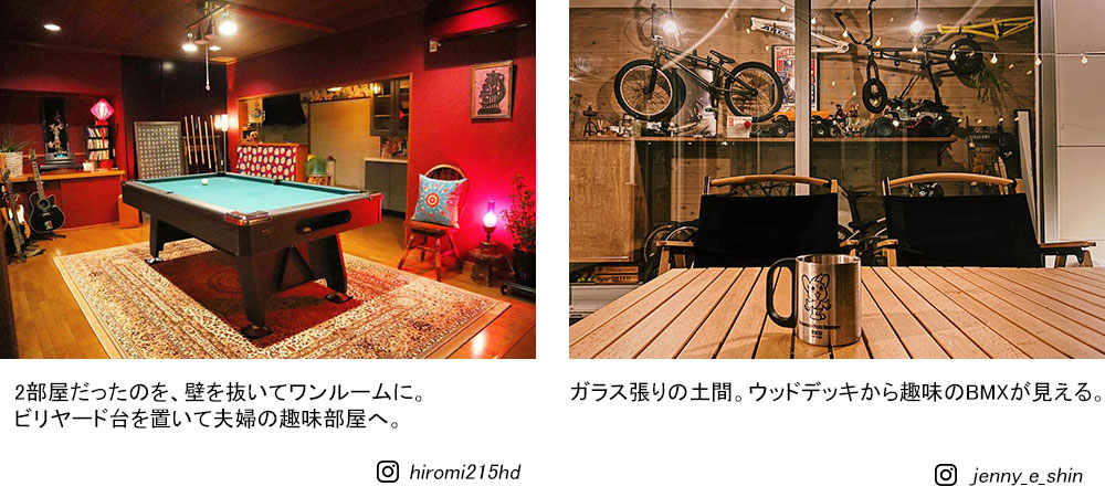 「ピアノなどの楽器を思いきり弾きたいという場合は防音が必要になります。戸建ての場合は外壁を防音壁にしたり、防音を施した地下室をつくれるのですが、マンションの場合は二重サッシにしたり、部屋の中に2〜3畳の小さなブースをつくったりします。床を少し浮かせると振動音も防げます。車やバイクが好きな方の中には、ビルトインガレージにして室内から眺めたいという方もいます。ほかにも、玄関にある程度の広さの土間スペースをつくれば、自慢の自転車やサーフィンの道具などを並べたりして楽しむこともできます」(水越さん)