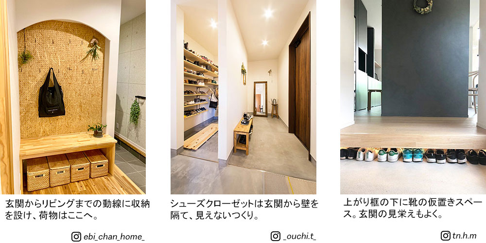 リビングやダイニングに荷物を持ち込まないことも大切。それには、玄関の収納がポイントです。
