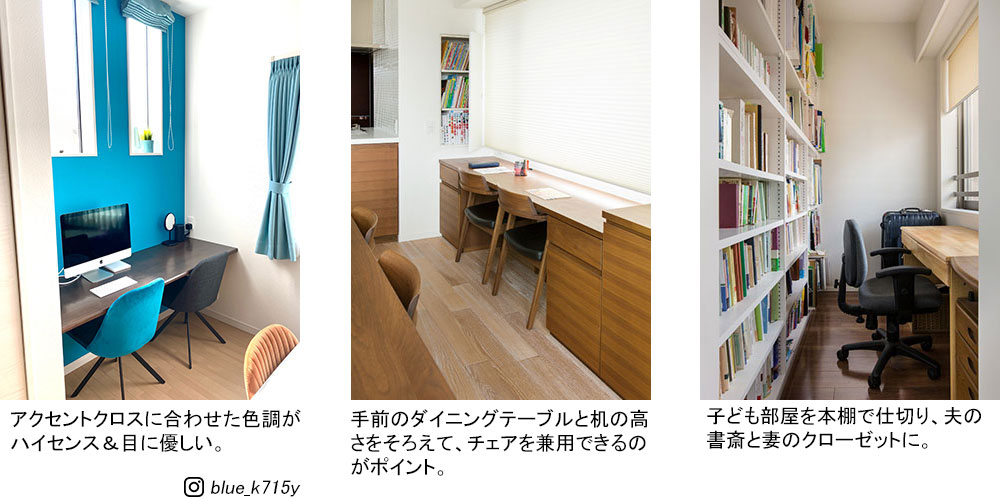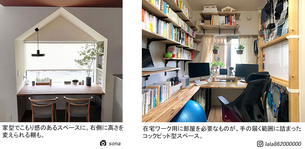 「テレワークは、新型コロナウイルスによる自粛生活が始まる以前から浸透しつつありました。ただ、その頃は割合として男性より女性のほうが多かったので、お子さんの様子を見たり家事をしながら作業ができるように、ダイニングやキッチンに近いところにちょっとした仕事スペースをつくるという事例が主でした。今後は、ご夫婦共にテレワークする場合にも対応する必要がありますね」(水越さん)