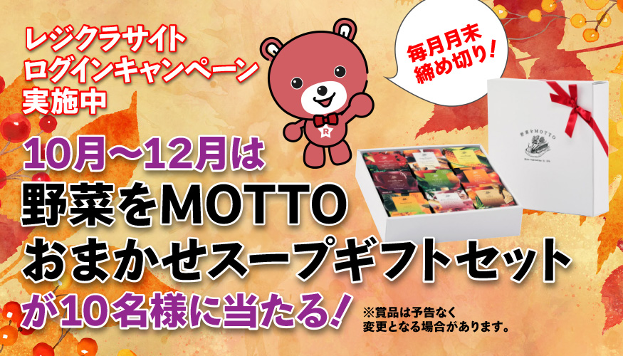 野菜をMOTTO おまかせスープギフト 毎月10名様 ※賞品は予告なく変更となる場合がございます。 |