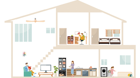 対して全館空調はホテルやデパートのような集中管理により、建物全体、家中をまるごと快適な温度にすることが可能です。そのため、24時間365日、家のどこにいても安心して暮らすことができるのです。