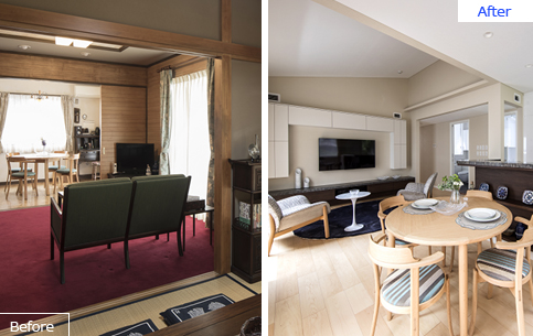 エアロテックは、戸建てもマンションもリフォームで導入することができるんですよ。「冷暖房の効きを気にせず、間仕切りのないオープンな空間で暮らしたい」「温度差のない健康的で快適な室内環境をつくりたい」そんな要望にも応えてくれるのが「エアロテックリフォーム」。