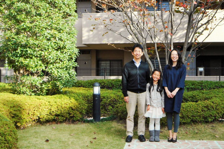 入居したときからある見事な桜の木や、バルコニーから眺める緑豊かな景色など変えがたい環境が魅力で、現在のお住まいに決めたというKさま。「いつかフルリフォームするときには、三菱さんのグループで頼んでみたいですね。会報誌などを見ていても、センスがいいと思うし、自分たちに合った提案をしてくれそうです(夫)」