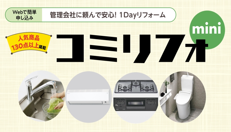 - コミリフォminiは、一部の協力施工会社に限定することで実現している価格のため、当社よりご紹介する専有部リフォームのすべてで掲載価格が適用とはなりません。