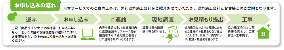 - 複数お申し込みの場合やコミリフォmini以外のリフォームと同時にお申し込みいただく場合、協力会社が複数社になる場合がございます。