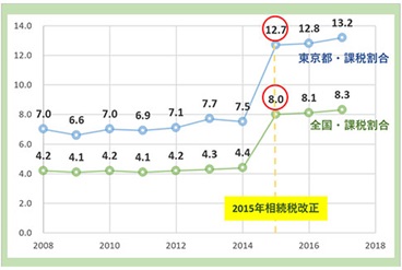 A.相続の現状は、2015年の相続税改正(基礎控除の4割引き下げ)によって、全国平均で相続税を支払う人の割合が4%台で推移していた改正前と比較し、改正後は8%台に上昇。東京都では改正前の6~7%台から、改正後は12~13%台まで増加しています。また、2018年に成立した民法(相続法)の大改正は、2019年1月~2020年7月までの間に順次施行されており、配偶者居住権や遺産分割、自筆証書遺言の方式緩和と法務局での保管が可能になったことなどが大きな変化としてありました。