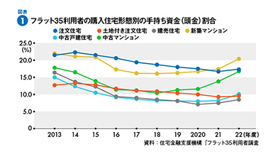 実際、住宅金融支援機構が民間金融機関と提携して実施している住宅ローンのフラット35を利用して、マイホームを取得した人の手持ち資金(頭金)割合は図表1のようになっている。