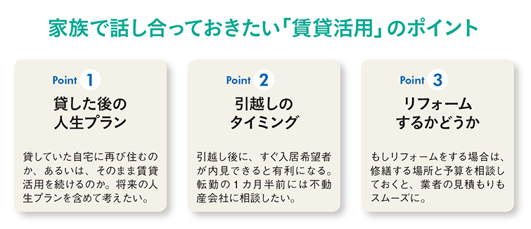 ――今すぐに、というわけではなくても、ゆくゆくは転勤などで自宅を貸すことも視野に入れたとき、何から考えたらよいでしょうか。