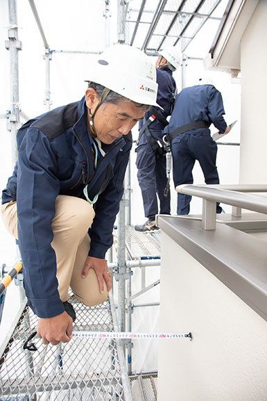 2つ目は「施工品質の担保」。「安全な現場は、整理整頓が行き届き、細部まで神経が研ぎ澄まされている」という考えのもとに安全管理が徹底されている現場こそが、結果として精度の高い施工を生みます。オーナー様に「三菱地所ホームに任せてよかった」と感じていただける安心感の裏付けとして、このパトロールは存在しています。