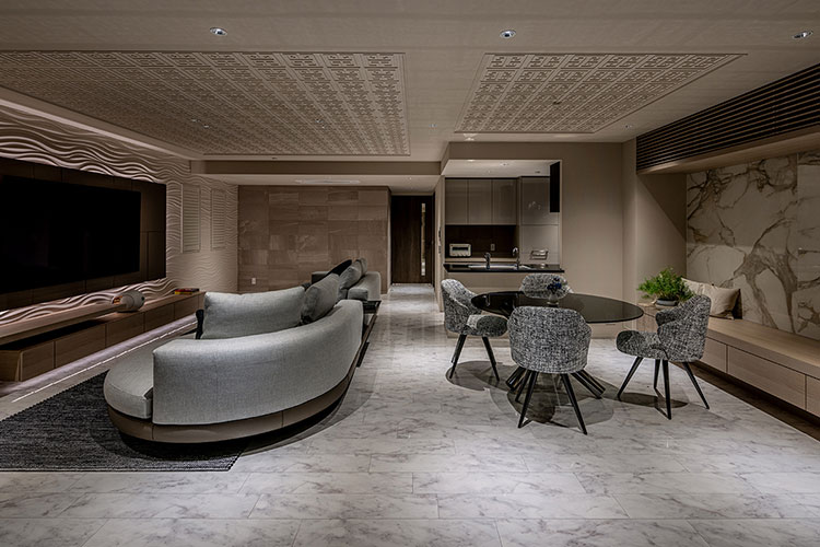 「マテリアルの選定は空間の格に影響します。床にタイルや大理石、あるいは欧州の伝統的なパーケット貼りのフローリングを採用することで、上質な落ち着きが生まれます」