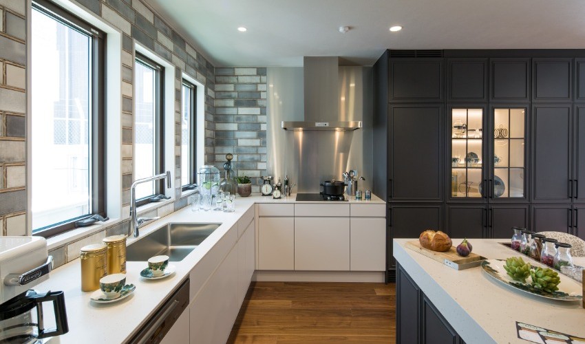 壁付けタイプのキッチンは、対面式に比べて省スペースにレイアウトができます。築年数が経ったマンションでは壁付け式も多く、配管の移動が難しい場合は、既存のレイアウトを活かしながら設備をグレードアップすれば、使い勝手やデザイン性を向上させることができます。