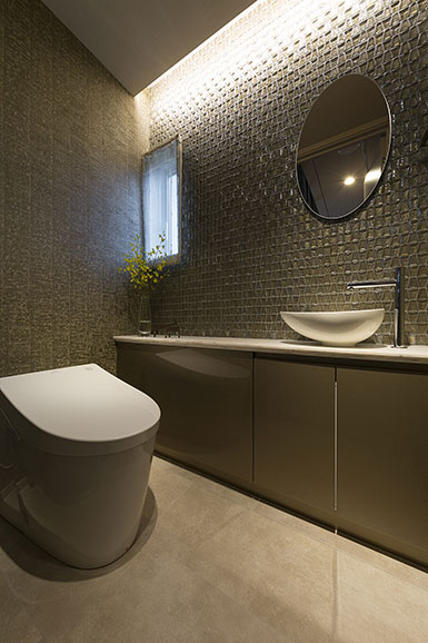 カウンターの上に洗面ボウルを置くスタイル。ホテルのような高級感があり、デザイン性が高いのが魅力です。
