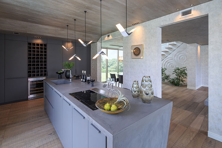 対面式キッチンの中でも、アイランド式はキッチンが壁に接することなく独立した島のようなレイアウト。キッチンがより開放的になり、複数人で調理する機会が多い家庭にもおすすめ。デザイン性が高く、回遊動線(行き止まりが無く周囲をぐるりと回ることができるレイアウト)なのでバリアフリーにも優れています。