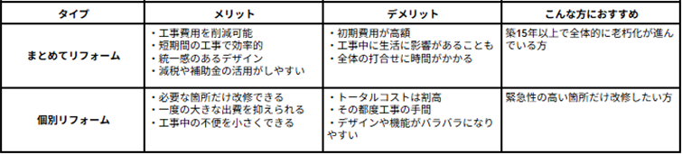 まとめてリフォーム vs 個別リフォームのメリット・デメリット