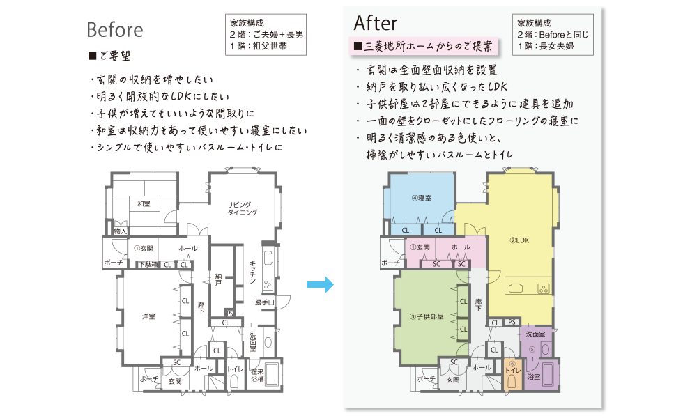 わが家を次の世代へ受け継ぐ二世帯リフォーム。これからもこの家で家族の幸せが育まれていくことでしょう。