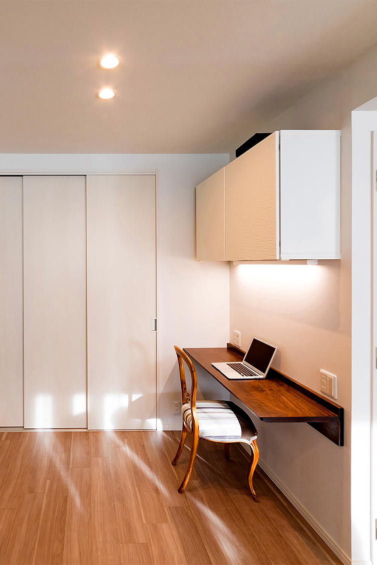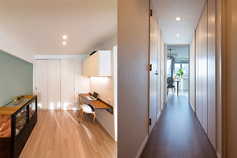 U様 夫の仕事の関係で、アメリカ、ヨーロッパ、中東のドバイと、様々な国で暮らしました。そこで手に入れた思い出の品がたくさんありましたので、日本に帰国した後も、それらをしまえる場所を確保したいと思っていました。収納スペースを広げればその分部屋が狭くなるのは当然ですが、そこは三菱地所のリフォームの担当者さんが知恵を絞ってくださり、スペースは大きく変えることなく、上手に収納量をアップするリフォームをしていただきました。