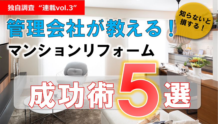 【独自調査 “連載vol.3”】マンション管理会社が教えるマンションリフォーム成功術5選!