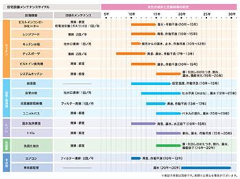 「主な住宅設備のメンテナンスサイクル」を参考にして設備交換が必要な時期やリフォームのタイミングを考えてみましょう!