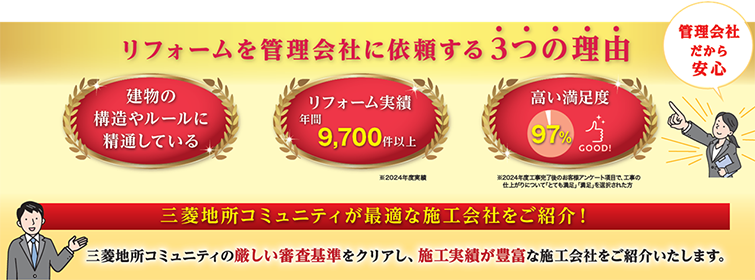 私たちマンション管理会社は、設備ごとにリフォーム時期をお知らせするとともに、高品質なサービスと豊富な実績で信頼できる施工会社のご紹介など、マンションを熟知しているからこそ培ったノウハウを活かし、皆さまの様々なご相談にお応えしています。