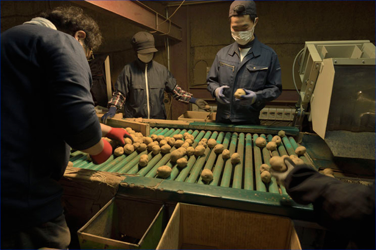 本間さん 実は、もともと本間松蔵商店は普通に倶知安町で採れた新じゃがいもなどを卸し販売していました。あるとき、札幌の料亭で料理人をしている(現在は倶知安町の料理店で料理長を務める)村井弘治さんに会いに行くときに手土産として、じゃがいもを持っていくことになったのです。そのときに持って行ったのが、たまたまうちの倉庫で1年以上眠っていたじゃがいもで、少しおっかなびっくり食べてもらったのですが……村井さんが「これは売れる!」と食べた瞬間に言ってくれて。正直それまで私も眠らせていたじゃがいもを食べたことがなかったのですが、収穫したばかりのものと食べ比べてみると確かに甘い。村井さんの後押しもあり、すぐにブランド化させました。