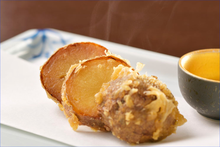 村井さん はい。いくつか「五四〇」を使用しているお料理はあるのですが、やはり一番素材の味がわかるのが、「五四〇」で作る天ぷらだと思います。あたたかいと口いっぱいに風味が広がるのですが、冷めたあとでも甘さがしっかりと残っていておいしい。しかもしっとりしている食感なので、とても上品な舌触りです。ほかにも、肉じゃがやポテトサラダにも使用していますが、「五四〇」自体が甘いから、特に砂糖を多く使用しなくても甘みが演出され、じゃがいもが主役で華やかな味わいの一品になります。ぜひ食べていただきたいですね。