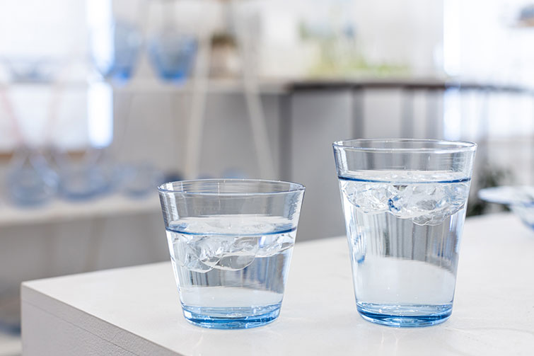 杉山さん 実は、このグラスを瀬戸内海に持って行って、海の色と比べてみると全然違うんですね。Aji Glassの青のほうが濃いんです。それでも、香川の人はAji Glassを見て「ああ、瀬戸内海だ」と思ってくれるんですよね。不思議です。でも、そのように、香川県に縁のあるものを連想してもらえるということは、私がやりたかったことが表現できているんだなと思います。