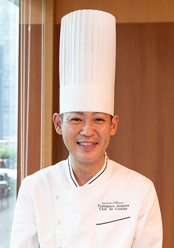 そめや・よしかず● 1976 年生まれ。1999年都下のフレンチレストランで、サービススタッフとしてキャリアをスタート。2001年丸ノ内ホテルに入社し、調理課で経験を積む。ポム・ダダン副料理長を経て、2020年9月に料理長に就任。
