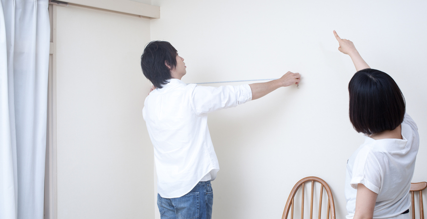 間取り図を見て、部屋の数や形だけで部屋を決めてしまうと、いざ暮らしてみた時に収納が足りなかったり、ベッドやテーブル、ソファなど家具の置場に困るという事態に陥りがちです。収納スペースの高さはどれくらいあるかも要チェック。自分の持ち物がきちんと片づけられるだけの収納があるか、もしなければ収納家具を収めるスペースがあるのかなどを確認しましょう。置きたい家具があるなら、サイズを計測し、事前に部屋に収まるかの確認も大切。特に、大きな家具については、搬入経路についての確認も必要です。簡単に間取り図の上に家具のレイアウトを描き込んでみると、よりイメージしやすいかもしれません。
