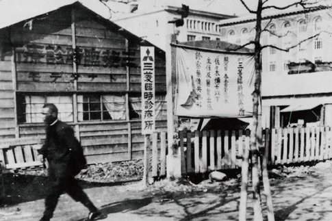 写真は、関東大震災で丸の内に開設した臨時診療所。その壁には『ドナタデモ』と書かれています。この精神を受け継ぎ、マンション居住者に加え、世の中に役立つ防災活動をひろくおこなっていきたいと考えました。