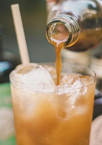 グラスに氷を入れ、炭酸水を注ぎ、最後にクラフトコーラシロップを加える。シロップは水より重いため、ステアせずとも自然に混ざりやすい。もっともオーソドックスでいて、銘柄ごとの味わいを感じ取れる飲み方。さらにフルーツやフルーツ果汁を加えて、いっそうフレッシュな味わいを堪能するのもいい。
