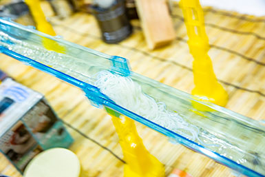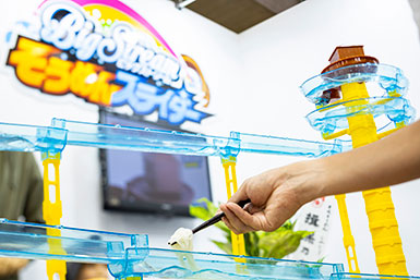 「スライダーの長いコースを確保するためには、ある程度高いところから水を流すことが必要ですが、そこまで水を汲み上げるモーターを開発するのが大変でした。モーターの力、ファンの位置や構造などを工夫しながら何度も実験を繰り返し、少しずつ高さを上げていき、満足のいく仕上がりになったのは制作開始から半年後のことです。工業用のモーターを使えば比較的容易にパワーを確保できたのでしょうが、『そうめんスライダー』はあくまでもクッキングトイであるということを心に留め、子どもたちが安全に使えることを一番に考え制作しました」と大江さん。平林さんと大江さんは、膝を突き合わせるように相談と試作を重ね、2016年に「ビッグストリーム そうめんスライダー」が誕生した。