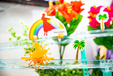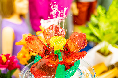 さらに、「そうめんスライダー」のリアルなホビーとしての魅力にも注目してほしいと続ける平林さん。「ビッグストリーム そうめんスライダー カスタムベーシック」の最上部に鎮座する家形のオブジェは、「東京サマーランド」の人気アトラクション「バッシャハウス」をイメージしたもので、水を噴射しながら勢いよく回転し水の循環をサポート。ウォータースライダーのようなアトラクション感を盛り上げくれる。他にも、10種類以上発売されている「そうめんスライダー」シリーズには、4色LEDで幻想的にライトアップされる噴水がある「メガラスベガス」や、南国ムード満載のギミックが特徴の「ビッグハワイ」など、モデルごとに個性が光るギミックが満載だ。