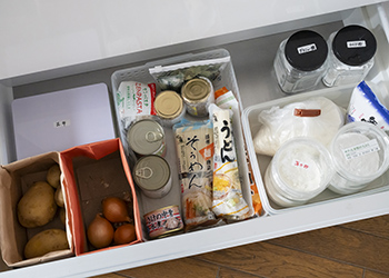 「毎日使い、汚れ、食材の増減があるキッチンは、最初に整理をしておきたい場所。ここをきれいにしておきましょう。コンロ回りには調味料やスパイスなどを置かず、収納スペースへ。コンロ回りをきれいにすることだけでも自己肯定感が上がりますし、“家事の筋力”を身に付けるトレーニングにもなります」