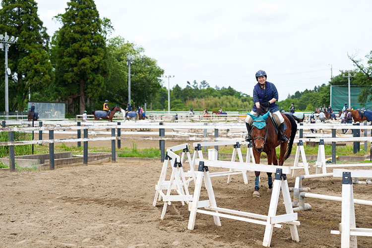 「馬の動きに合わせてお尻を浮かせられるようになると、まさに“人馬一体”となって軽快に走れますよ」と多胡さん。「乗馬体験1回コース」でそこまでマスターできる人もいるそうだ。