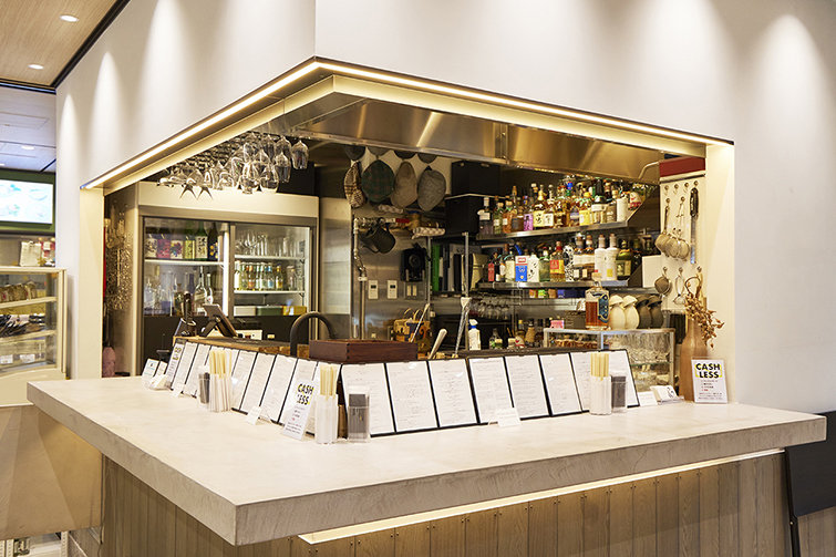 特筆すべきは、角打ちとは思えないオリジナルの本格カクテルを20種類以上揃えていることだ。ノンアルコールの華やかなモクテルもオンメニューしている。平日は仕事終わりの界隈のワーカーが多く、週末は遠方からの買い物客や旅行客で賑わう。会食前の0次会、あるいは会食後の〆の1杯に立ち寄るという使い馴れたお客もいる。それがなせるのも、駅直結という絶好のシチュエーションならではだろう。