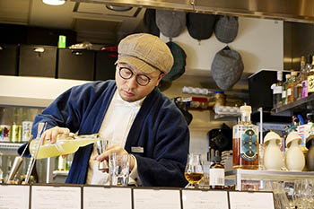 「SAKE COLLECTIVE &SPIRITS」の大きな特徴は“飲めるセレクトショップ”であること。店内にはバーカウンターがしつらえてあり、ここで対象のスピリッツや日本酒の有料試飲ができる。とくにスピリッツは度数が高く、1本を買う前に試飲ができるのはありがたい。