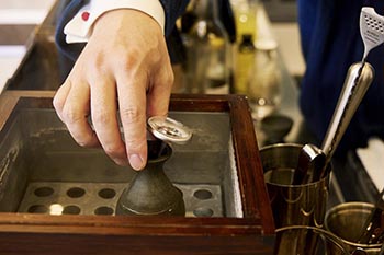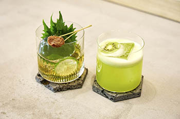 「月替わりのお茶割りを用意しています。全国茶品評会で11度も最高賞を受賞している同フロアの『祇園 北川半兵衛』や中国茶や紅茶など一年を通して多様なお茶割りを提供します。純粋に蒸留酒の飲み比べをしたい場合は、3種類1,540円から可能です。可能な限り、ご指定いただいたスピリッツを使ったクラシックカクテルにも対応しています」