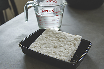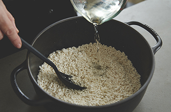 ③ 水を注ぎ入れる。麹がしっかり水に浸るように、水分量は加減する。