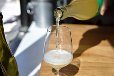 自然に敬意をはらいながらぶどうを育て、できるだけ人為的な介入をせずに造られるナチュラルワイン。そんな活きたワインが世に広まった昨今。ナチュラルワインの生産者が田舎方式という製法で造る微発泡ワイン“ペット・ナット”が注目を集めるようになった。微発泡ならではの柔らかな泡感が心地よく、明るいうちから飲みたくなる軽やかさをまとっている。
