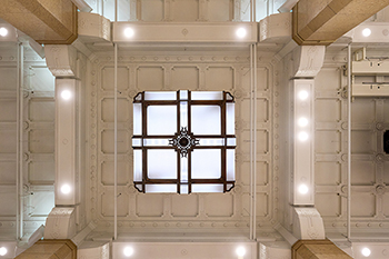 日本橋を南北に走る中央通りに面したファサードは、ほぼ当時のままだという。中央通りを挟んで本館正面口外観を眺めながら「ちょうど90年前にタイムスリップしたかのように、創建当初の趣を感じていただくことができます。まさに日本橋髙島屋S.C.館の“顔”でございます」と岸さんが語った。