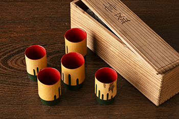「竹盃の中側は朱漆で、高台は緑漆で塗られています。この時代、緑色の漆が流行ったことがあったんですね。その後、昭和の終わり頃にも緑漆が流行りました。今はすっかり見かけなくなってしまいましたが、この竹盃は、当時はかなりモダンだったでしょうね。これを買い求めて愛でた数寄者が、そうした職人を育てたんです。作り手も大事ですが、もっと大事なのは、それを愛でる力がある買い手です。結局、すごい佳品でもそれをわかる人がいなければ、こうして現在まで残ってはいないんですから」