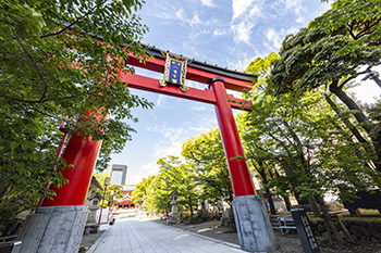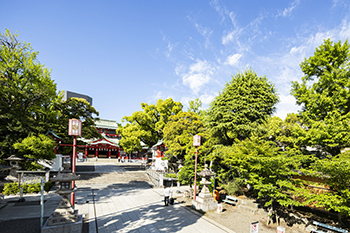広い境内には17の末社が祀られており、江戸勧進相撲発祥の神社であることから「横綱力士碑」の石碑が建立されている。