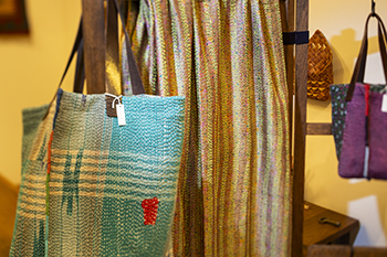 次に向かったのは、世界のさまざまな布や新旧の手仕事を加えた品々を販売する『watari』。店主の小林紀子さんが自ら買い付けてきたものばかりだ。