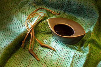 「悲しい」という気持ちをヤシの木の繊維を使って模様で織り込んだジンバブエのバスケット、ラップランドで出会ったトナカイの皮と角で造られたペンダント。フィンランド、台湾、タイ、インド……と多国籍な作品たちはそれぞれにストーリーを持っている。