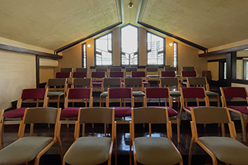 現在、2階には床の段の上に椅子が並べられている。この椅子自体は現代のものだ。2014(平成26)年11月から講堂の保存修理・耐震対策工事が行われた。それまでこの段の上の椅子は連結され、びっしりと隙間なく並んでいたそうだ。