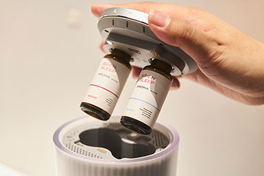 さらに、催眠効果のあるラベンダーやカモミールの香りを配合したアロマが、寝室に広がる。「1/fのゆらぎ」の「光」と「音」に包まれて、リラックスすると呼吸が深くなるので、豊かなアロマの香りをゆったりと嗅ぎながら眠りにつく、というわけだ。