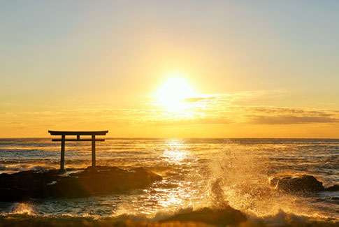 古くからの日本では、すべてのものに神様が宿り、すべての現象は神様がもたらすものという宗教観があり、日の出を毎日拝むという風習がありました。また、お正月前夜の大晦日には神々を祀る庚申待ちで徹夜をする風習もあります。「ご来光」と呼ばれる元旦の初日の出は、年神様の光臨と考えられて、新しい一年の幸福を祈る特別な習慣として、今も受け継がれているものです。