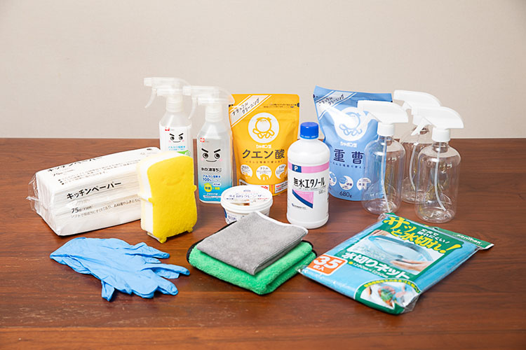 - 使用したもの/無水エタノール(キッチン用アルコール除菌スプレーでも可) アルカリ電解水 キッチンペーパー マイクロファイバータオル ゴム手袋