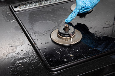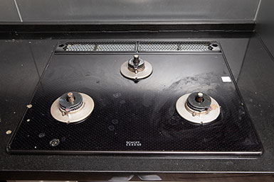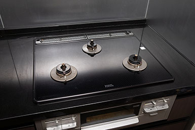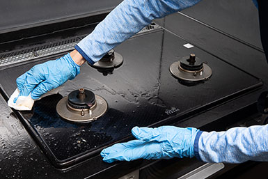 ガスコンロまわりのベタベタした汚れは調理中にはねた油がほとんどです。放っておけば油にホコリが吸着し頑固な汚れになりかねませんので、気づいたときに拭き取りましょう。ガスコンロのお掃除には油汚れに強い無水エタノールとアルカリ電解水を使用します。