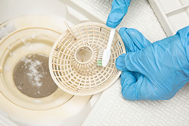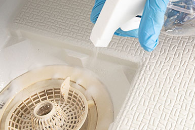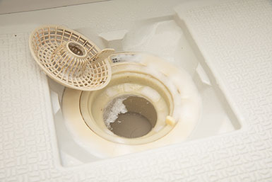バスルームの中で最も汚れがたまりやすいのが排水口です。体や髪の毛を洗うときに出る皮脂汚れや髪の毛が主な原因といわれていますが、石鹸カスも見逃せません。髪の毛や皮脂汚れなどと石鹸カスが混ざるとドロドロの汚れとなり、排水口にこびりついてしまうのです。悪臭やつまりの原因にもなるこれらの汚れは、重曹とクエン酸水で取り除きます。